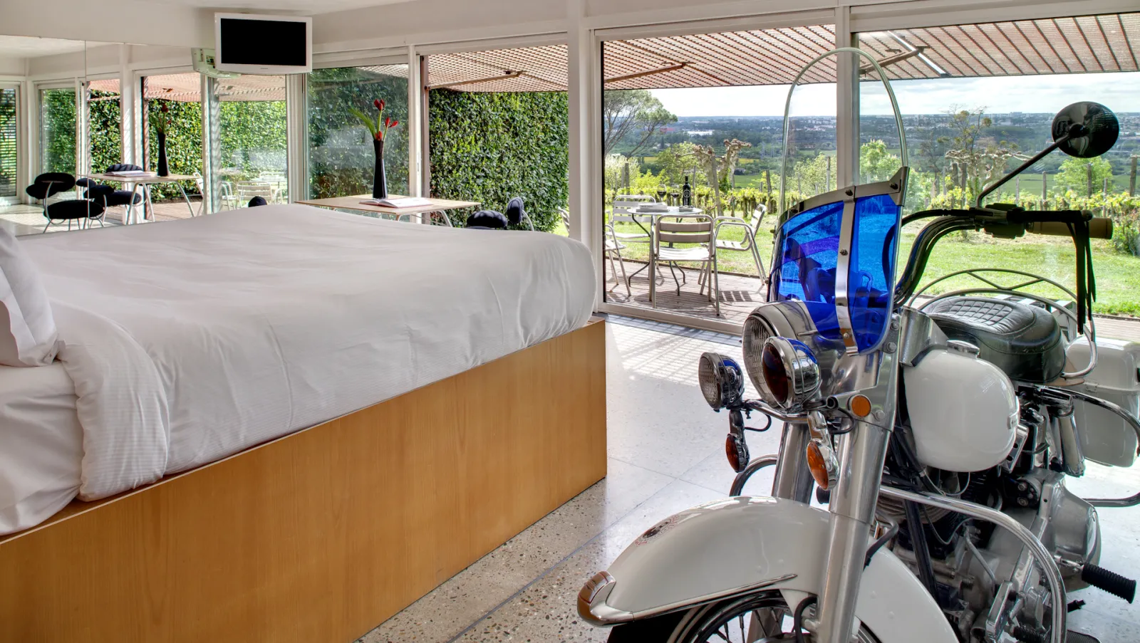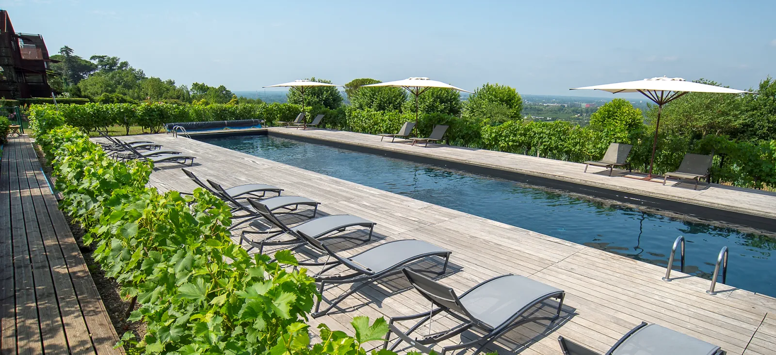 Each of the immaculately designed bedrooms boasts magnificent panoramic views of the surrounding vineyards in the beautiful village of Bouliac.